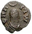 Obverse: Bust of the king wearing a headcloth. Crescent above the