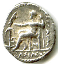 Reverse: Crude figure of Zeus seated, holding eagle and scepter with