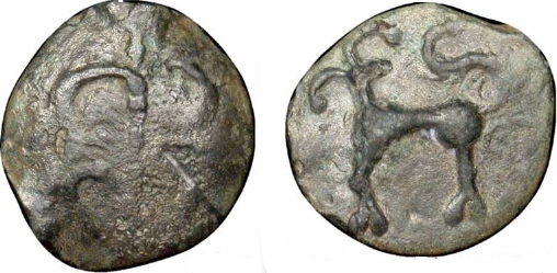 Potin coin of Helvetii tribe. c 100-80 BCE