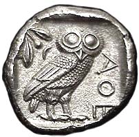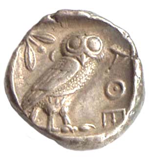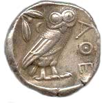 Athens attained prominence as a major city of ancient Greece during the time of Peisistratus (560-514 BCE). After the Persian war (490-479 BCE), Athens was rebuilt on a grand scale by Perikles. Rebuilding of Athens fueled the revival of economy and brought prosperity to the city state. Athens became one the centers of power and trade of ancient Greece. Athenian coins depicted head of Athena patron goddess of the city on obverse and a standing owl, symbol of wisdom in greek belief system. This coin remained unchanged for almost four centuries.