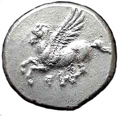 Corinth was one of the most important cities of ancient Greece. Corinth located in the isthmus connecting Peloponnesos and central Greece. It controlled trade in the Mediterranean and became powerful for some time. Its coins "Corinthian Colts" became the currency of trade rivaling "Athenian Owls" of Attica in the region.