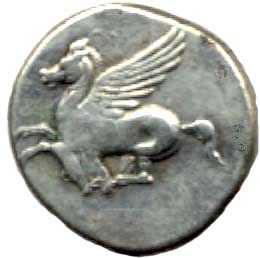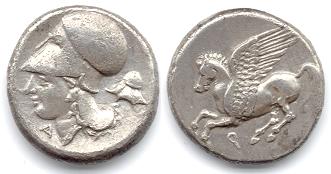 Obverse: Head of Athena wearing Corinthian Helmet.