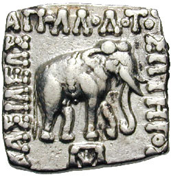 on numismatic evidence. Bactrian coins were imitations of Greek issues,