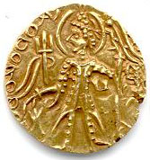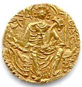 Gold staterof Kushan king Shaka. c. 330 CE.