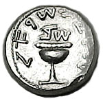 Obverse: Chalice withg pearled rim. Legend - half Shekel.