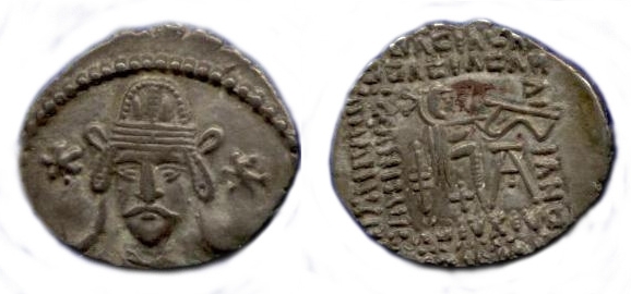 Silver Drachm of Vonones II. 51 CE. Obverse: Bust of Vonones II. Reverse: Archer seated with bow. Reference: Sellwood 67.1; Shore 368.