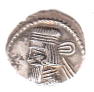 Silver Drachm of Artabanus III. 80 - 90 CE Obverse: Bust of Artabanus III facing left. Reverse: Archer seated holding a bow. Weight: ~ grams. Size: ~ millimeters. Reference: