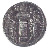 Reverse: Zoroastrian fire altar with two attendants standing on each