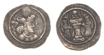 Reverse: Zoroastrian fire altar with two attendents standing on each