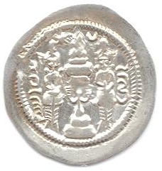 Reverse: Zoroastrian fire altar with two attendents standing on each