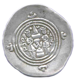 Reverse: Zoroastrian fire altar with two attendants standing on each