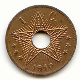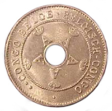 hole in the center and legend Belgian Congo in Flemish and French.