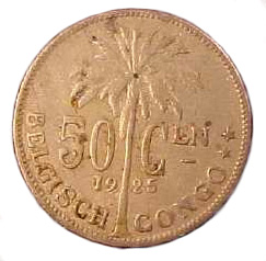 Reverse: Palm tree with legend 50 c, Belgian congo and year in numbers.