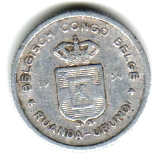 Obverse: Five pointed star with 5 F in the middle and legend 'Belgian