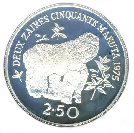 Reverse: Congolese Coat of Arms with legend Ten Makuta and year in