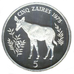 Obverse: Bust of President Joseph-Desire Mobutu with Five Makuta in