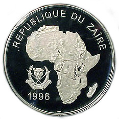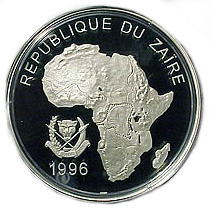 Obverse: Africa map and Congolese Coat of Arms with a legend