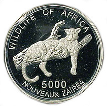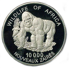 Reverse: Gorilla with legend ' Wildlife of Africa and 500 Nouveau Zaire'.