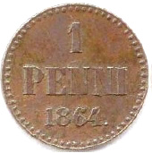 1 Penni. Copper. 1864-71 CE