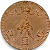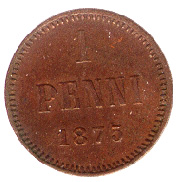 10 Penniä. Copper. 1875-76 CE