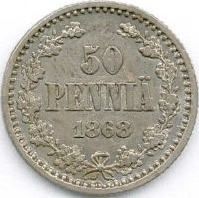 50 Penniä. Silver. 1864-71 CE