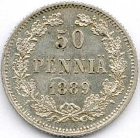 50 Penniä. Silver. 1872-93 CE