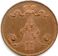 5 Penniä. Copper. 1872-75 CE.