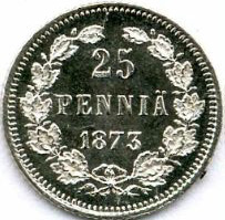 25 Penniä. Silver. 1872-99 CE