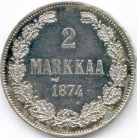 2 Markkaa. Silver. 1872-74 CE