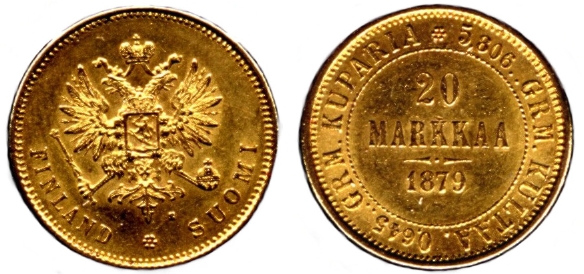 20 Markkaa. Gold. 1879-91 CE