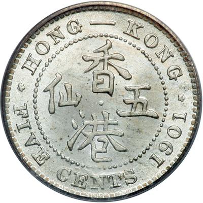 Reverse: Legend Hong Kong, Five cents and year in numbers.
