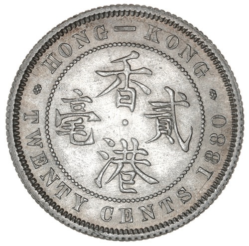 Reverse: Legend Hong Kong, Twenty cents and year in numbers.