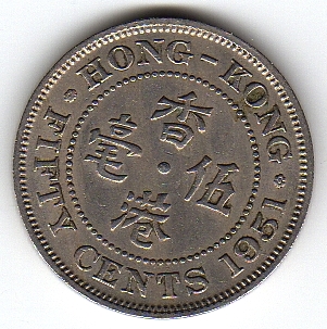 Reverse: Legend Hong Kong Fifty Cents and year in numbers.