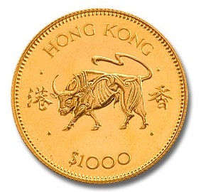 Reverse: Ox (Chinese Zodiac years) and legend Hong Kong 1000 Dollars.