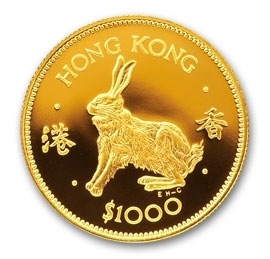 Reverse: Rabbit (Chinese Zodiac years) and legend Hong Kong 1000 Dollars.