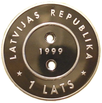 Obverse: Button shaped coin. Inscription - 1999 & 1 LATS, LATVIJAS REPUBLIKA.
