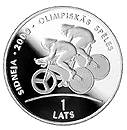 Reverse: Inscription - Athletes riding bicycle. SIDNEJA · 2000 · OLIMPISKAS SPELES (Sydney 2000 Olympic Games)
