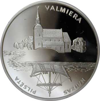 Obverse: Hanseatic city seal with the coat of arms of Valmiera with St.