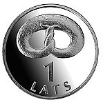 Obverse: Ornate decoration of Art Nouveau. Inscription - RĪGA 2005, 1 LATS & LATVIJAS REPUBLIKA.