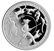 Reverse: Baron Münchhause with a rifle in his hands and a