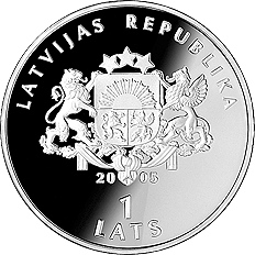 Obverse: Coat of arms of the Republic of Latvia. Inscription - LATVIJAS REPUBLIKA, 2005 & 1 LATS.