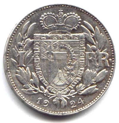 1 Frank. Silver coin. K-8