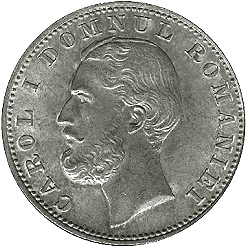 Obverse: Head of Carol I with inscription CAROL I DOMNUL ROMANIEI