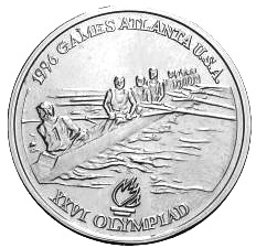 Obverse: Swimmer in 1996 Olympics.