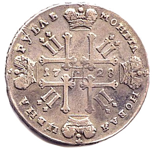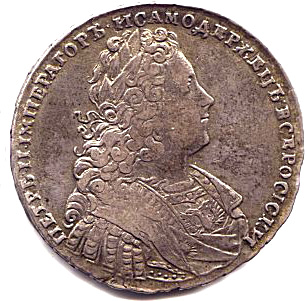 Silver Poltina (50 kopeks) of Peter II. 1727.