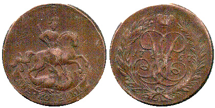 Copper 1 Kopek of Elizabeth. 1757-61.