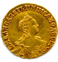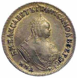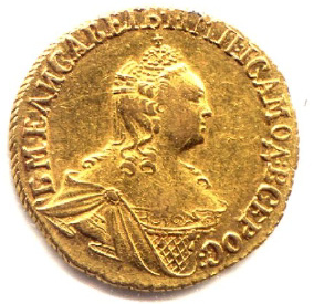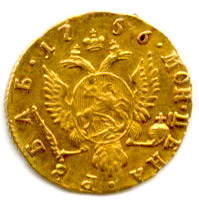 Gold Ruble of Elizabeth. 1756-58.