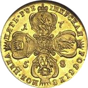 Gold 10 Rubles of Elizabeth. 1755-59.