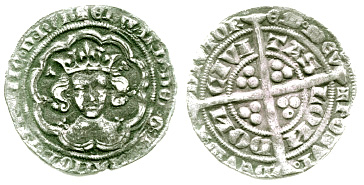 Obverse: Facing bust of Edward III with legend "Edward by the grace