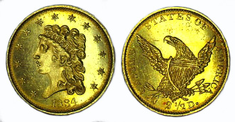 Gold 2 1/2 Dollars (Quarter Eagles) 1834-39.